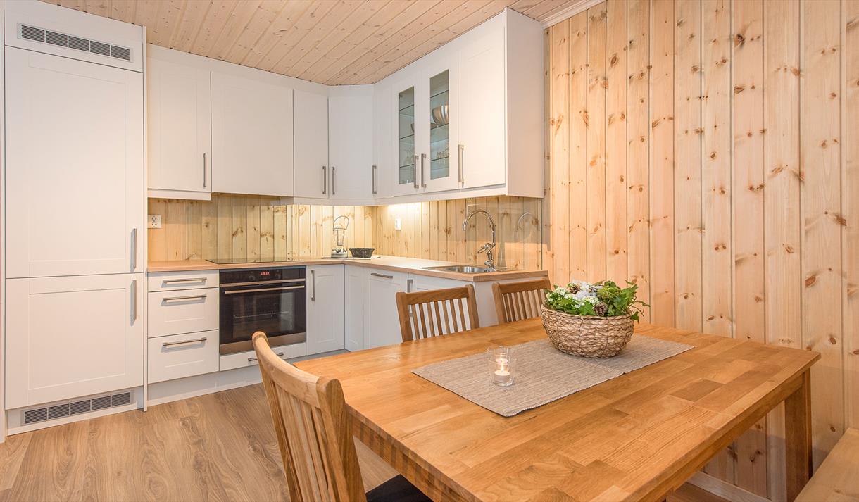 · Kjøkkenkrok: Velutstyrt kjøkken med komfyr/stekeovn, kjøleskap med frysetopp, mikrobølgeovn, oppvaskmaskin og kaffetrakter.