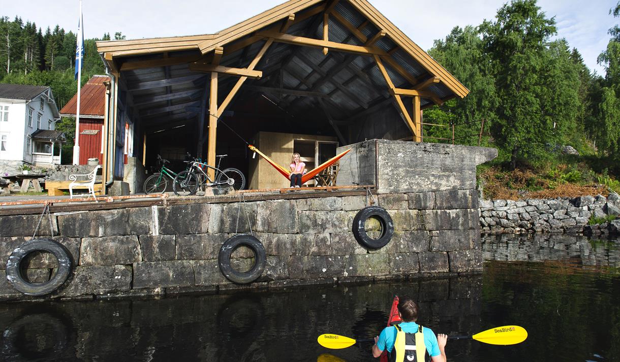 Ved bryggja i Fjågesund er det også ein tilsvarande soveboks, book soveboks i Fjågesund også i kanalsesongen.