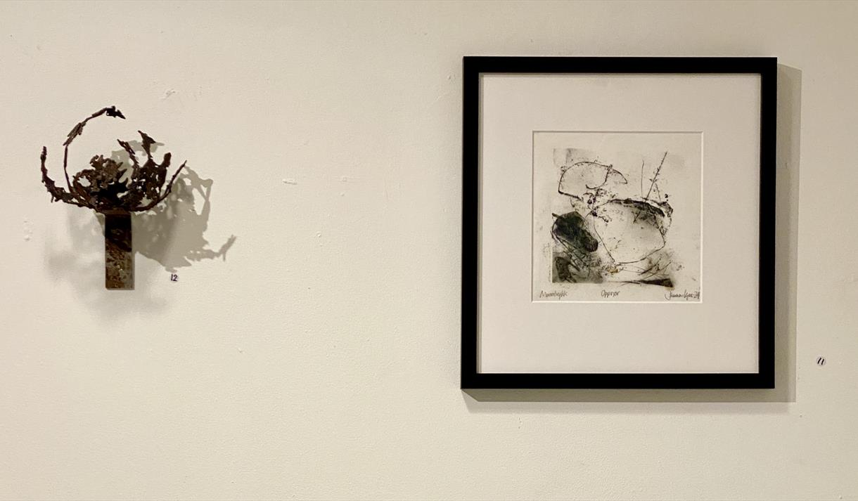 De grafiske arbeidene speiler skulpturenes energi gjennom papirets materialitet, linjer og strukturer. Samlet inviterer utstillingen til refleksjon rundt tilstedeværelse, sårbarhet og hvordan minner kan tre fram i rom, form og kropp.