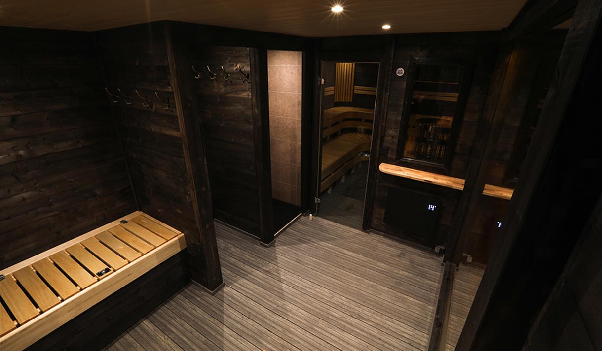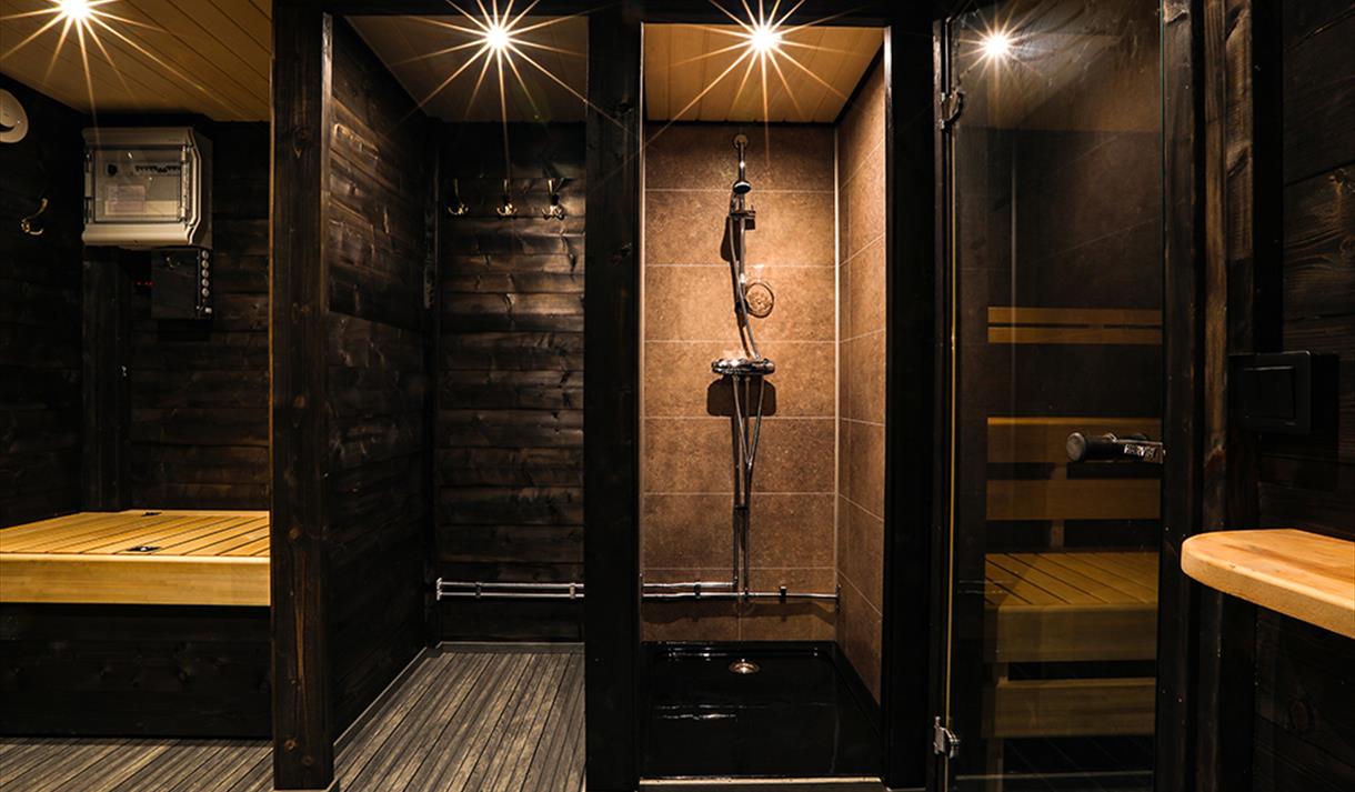 Badstuen har i tillegg fasiliteter som dusj, stereoanlegg, omkledningsrom og kjøleskap.