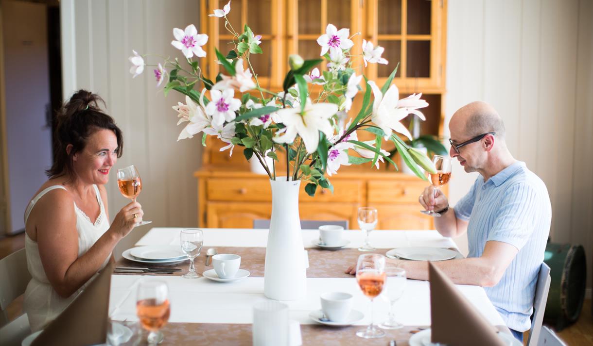 I pensjonatet vårt tilbyr vi hyggelige og atmosfæriske opphold. I kaféen kan du ikke bare få dagens middag eller en kopp kaffe med hjemmelaget kake, men det finnes også en butikk med fine gaver.