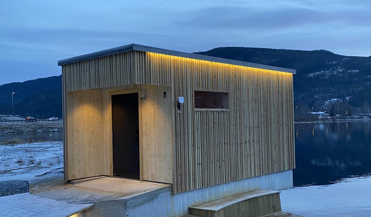 Toalett fins ved hovudinngangen til klubbhuset, og eige skifterom er inne i badstua.