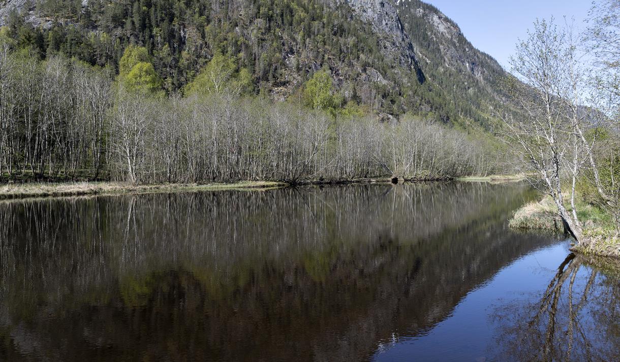 Frå utsiktsposten på Nylende, som nå er tilrettelagt som stoppestad langs vegen, ser du…