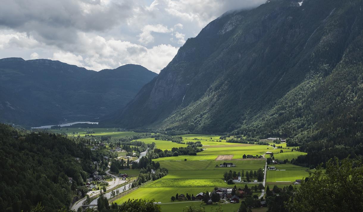På vegen kan du ta avstikkaren inn i Svartdal, grenda i svingen. Kjend for gullgruve, sjeldne sommarfuglar, nasjonalt utvald kulturlandskap med rikt artsmangfald, kunstnarar, spinneri og eit aktivt grendelag! Grendelaget har flytta skulehuset sitt ned til sykkelruta og laga ein særmerkt stoppestad langs ruta her.