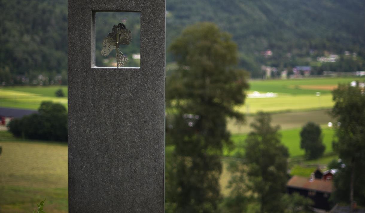 Åtte skulpturelle "kikkeskåp" i stein står ute i landskapet på stader rundt Seljord som…