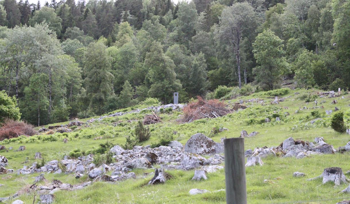 Åtte skulpturelle "kikkeskåp" i stein står ute i landskapet på stader som er knytt til…