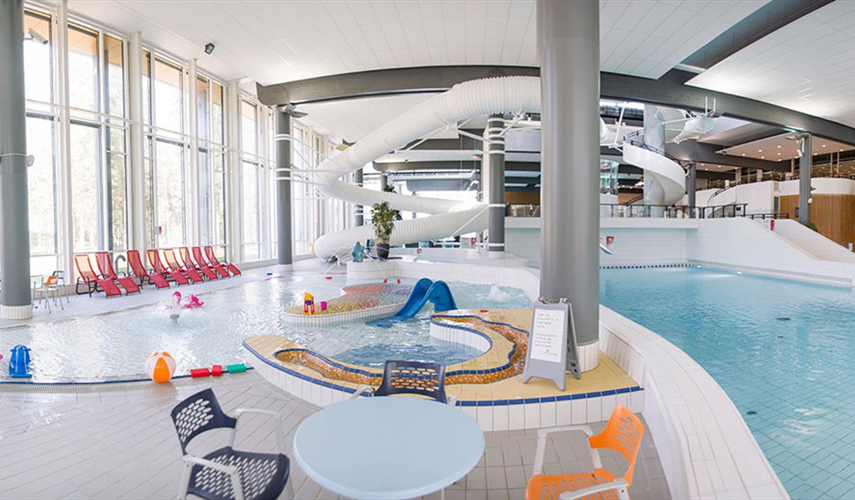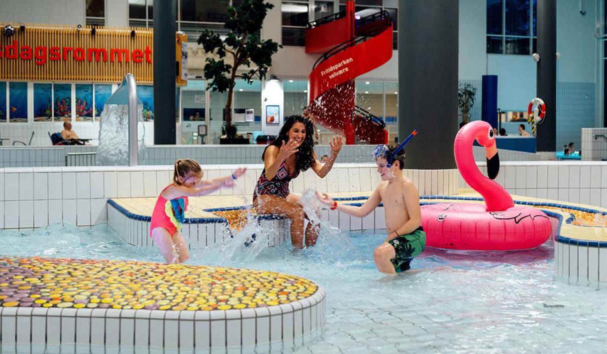Du kan boltre deg i hele 6 ulike basseng og stupe fra 7,5 meter hvis du tør! Opplev bølgebasseng med strandsone der bølgen går hver time. I tilknytning til bølgebassenget er det også en strømkanal hvor du kan la deg føre med av strømmen - rundt og rundt.