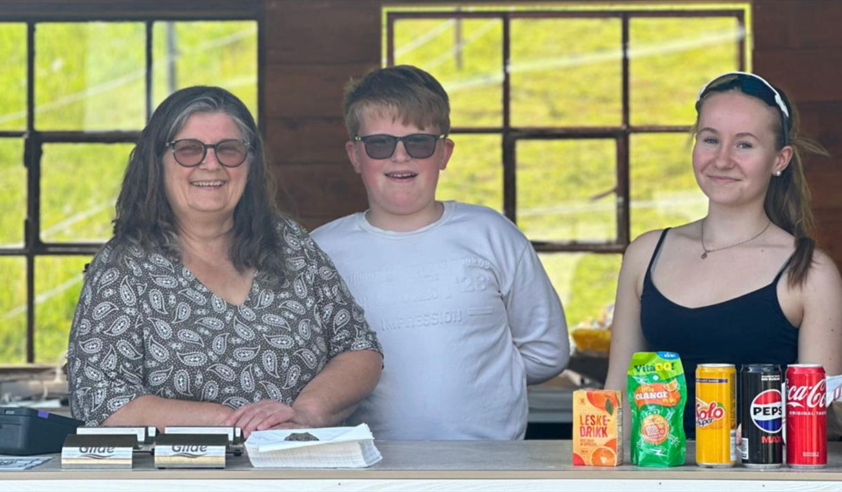Kiosken er alltid åpen når besøksgården er åpen og tilbyr forfriskninger som is, vafler og pølser.