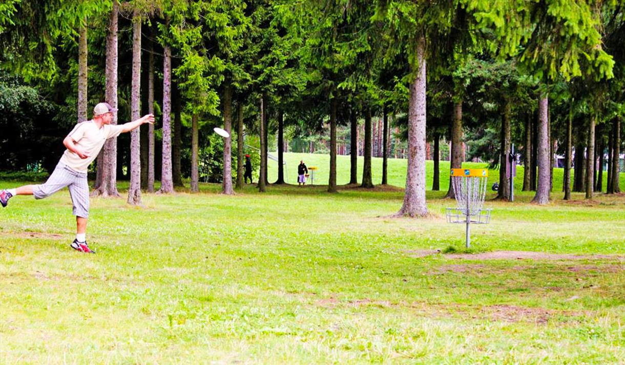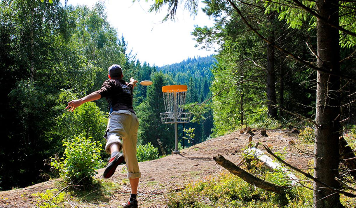 Frisbeegolf er golf, bare at man bruker frisbee istedenfor køller og kurver istedenfor hull.