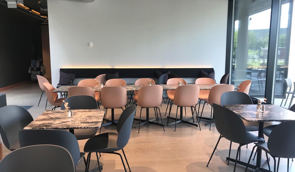 I de store fellesarealene i 1. etasje serveres frokosten, enkel økologisk mat som er god og bra for både kropp og miljø. Fokuset er grønt og fresht, og unødvendig overflod blir utelatt.