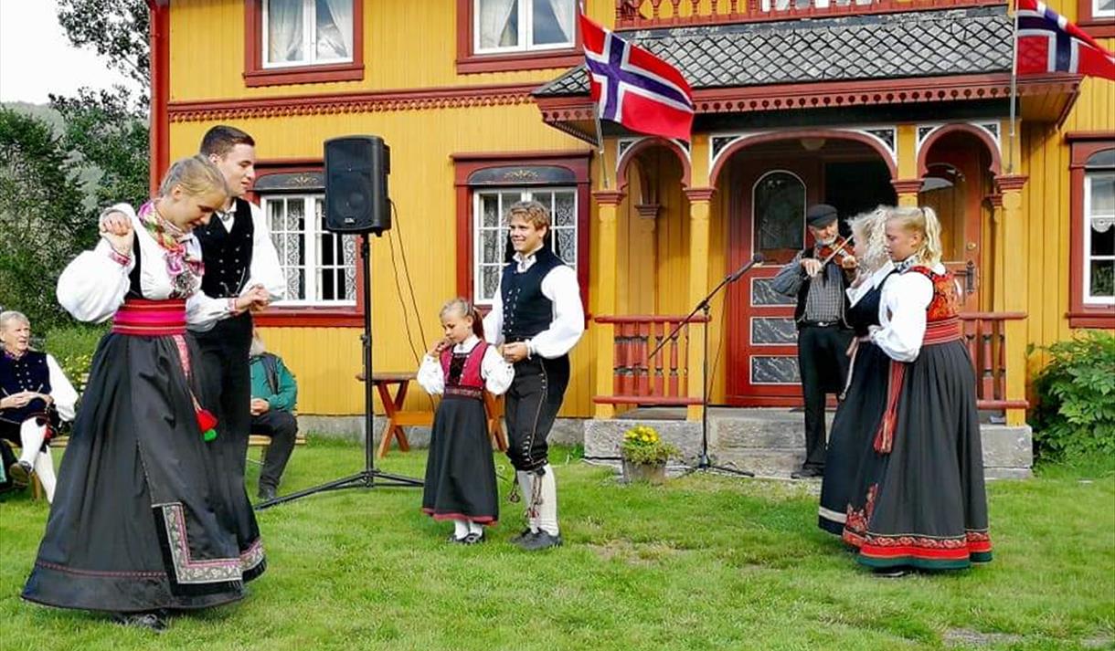 I juli er tunet åpent hver dag kl.12-17. Unge gardsjenter i Eldhuskafe lagar dagens Dugurd/lunsj av råvarer frå garden og Fruktbygda. Frivillige omvisarar frå Broderikafeen i bunader som broderer mens dei forrel om bunadsutstillinga etter Nils Flatland og Liv Berit Kaasa.
