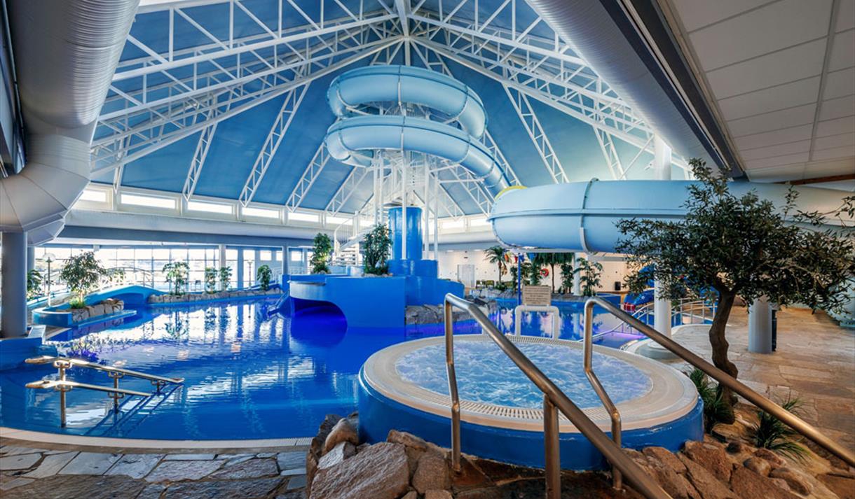 Vår badepark er hele 4000 kvadratmeter stor, og med 31 grader i vannet hele året er dette det nærmeste du kommer et tropisk paradis i Norge. Badeparken er en populær helgeaktivitet i vinterhalvåret, og redningen for feriefolket når sommeren svikter. Og når sommeren smiler, har vi naturligvis et basseng utendørs også. Det kan selvsagt brukes om vinteren også - for i vannet er det alltid deilige 31 grader - inne som ute!