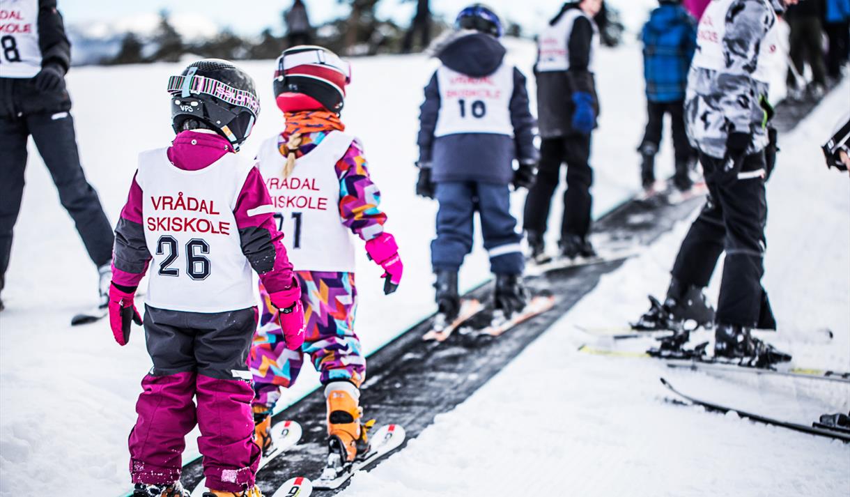 Det er alltid gøy å være liten i Vrådal, og tilbudene er mange. Barneområdet for aking og skilek ligger uforstyrret til borte fra hovedløypa. Her kan barna kose seg med 2 skibånd, på totalt 100 meter, som er enkle å bruke, selv for de minste. Dette området er også perfekt for nybegynnere som tar sine første turer på ski og det er helt gratis å bruke det. Det er satt opp koselige figurer i løypene, som barna kan leke og kjøre slalom mellom. Du kan også ta de med på aking her. I tillegg er lyset på til kl. 21.00 i Lille-Petter, så her kan de fint ake etter stengetid.