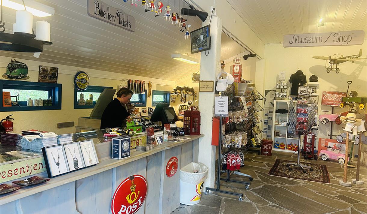 I museumsbutikken kan du kjøpe suvenirer, samleobjekter, bøker, bilder og sjeldne leker som tråbiler, pedalbiler og bilmodeller. Museet har også en koselig kafé med varm og kald mat, kaker og drikke.