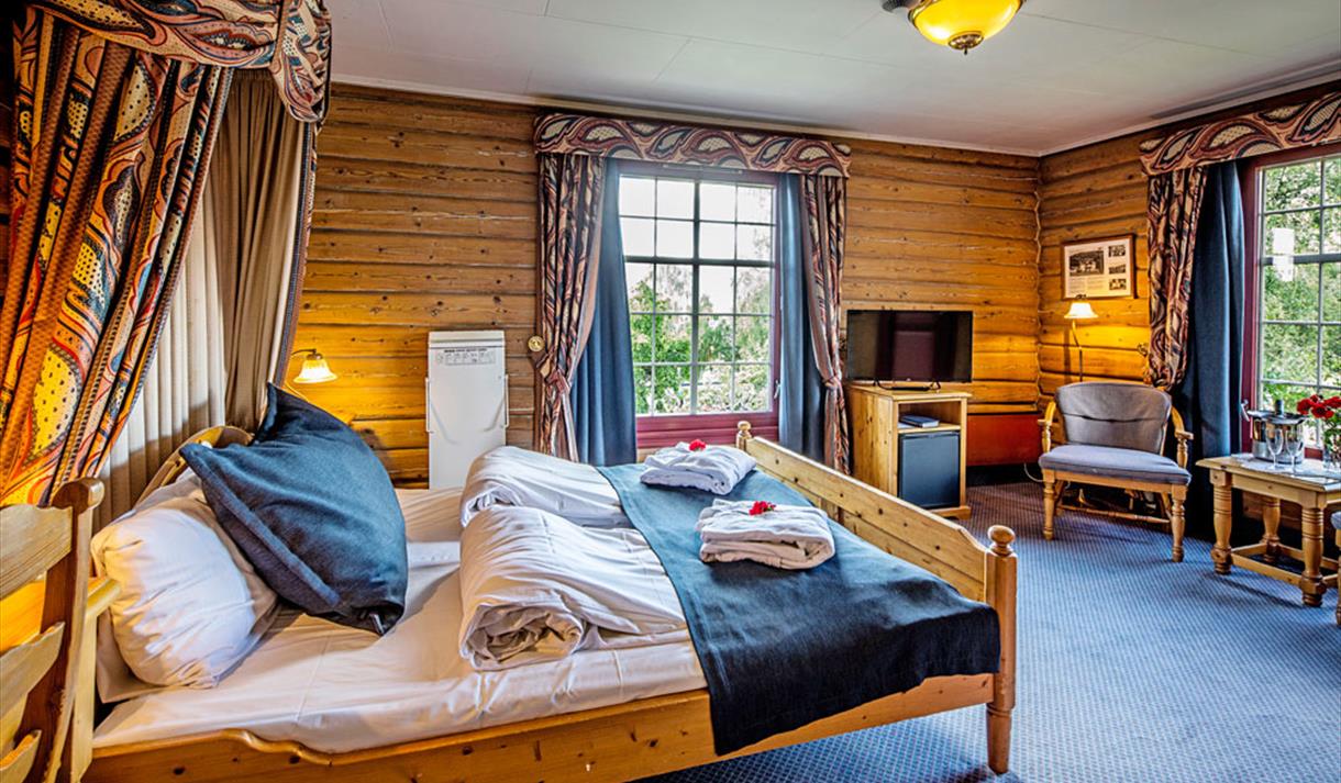 Fellesarealene inkluderer restaurant, bar, pianobar, svømmebasseng med sauna og mange hyggelige salonger. Den gamle delen av hotellet har stuer med tømrede vegger og mange samlegjenstander.