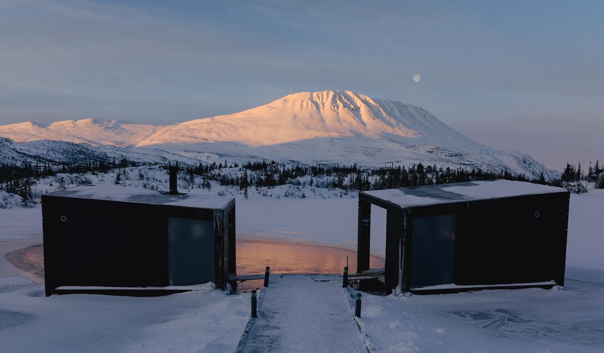 Opplev roen på Kvitåvatn i vår flytende sauna, hvor du kan nyte den fantastiske utsikten mot Gaustatoppen og Heddersfjellene.