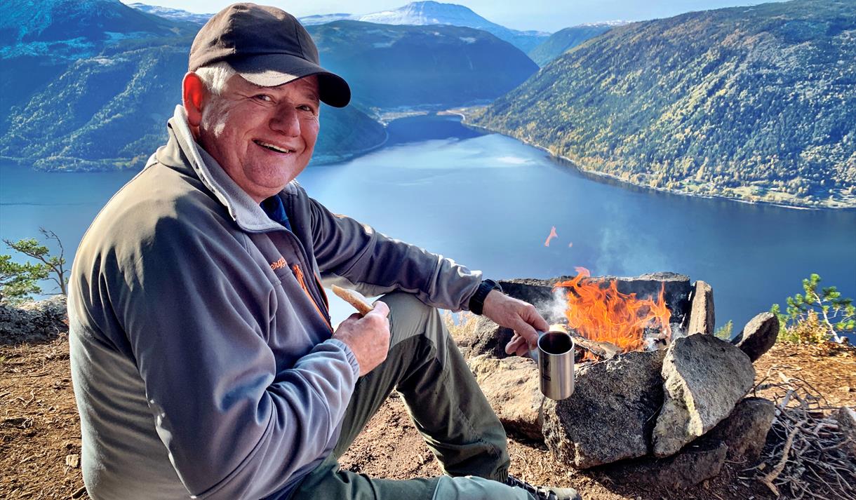 Frå utsiktsposten på Nylende, som nå er tilrettelagt som stoppestad langs vegen, ser du…