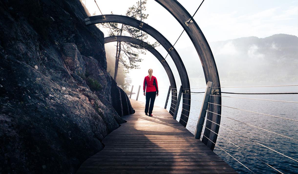 Tretoppveien er designet av Danmarks ledende arkitektfirma, EFFEKT og skal gi alle menesker muligheten til å komme seg på topptur i Fyresdal uansett funksjonsevne.