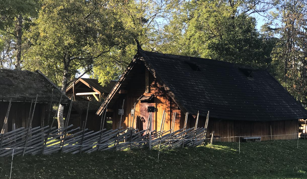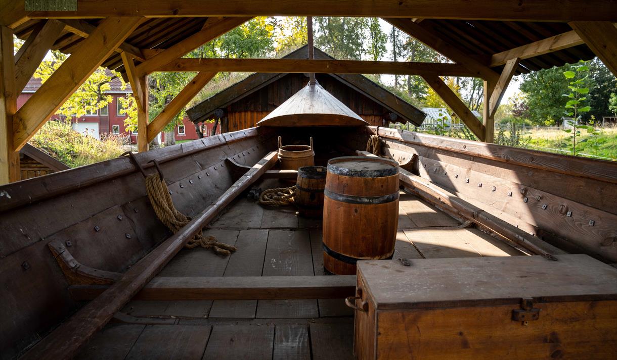 Byggherrene har til og med laget en tro kopi av jerngryten som ble funnet på Osebergskipet. Ved siden av hovedhuset har det også reist seg en smie og et fjøs, som nå fungerer som et utstillingsrom med kopier av jernaldergjenstander.