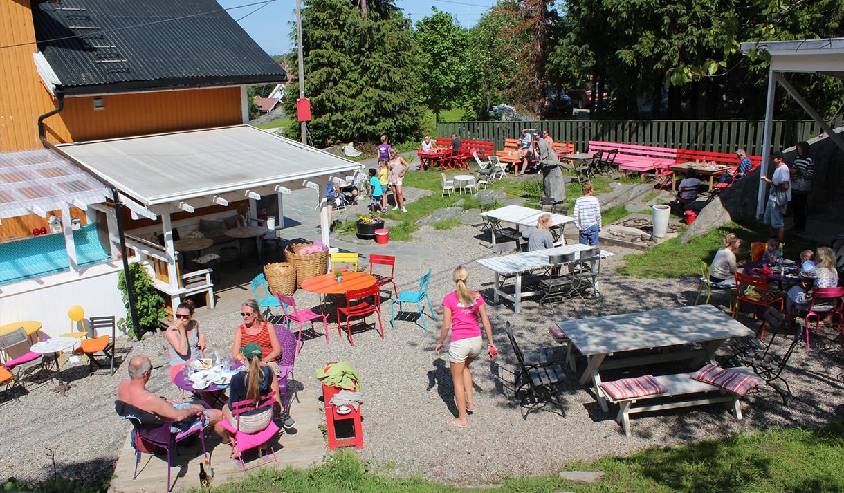 Rett ved siden av kirken ligger Skåtøy Kafé & Galleri, hvor du kan nyte hjemmelaget kaffe og se på årets kunstutstillinger.
