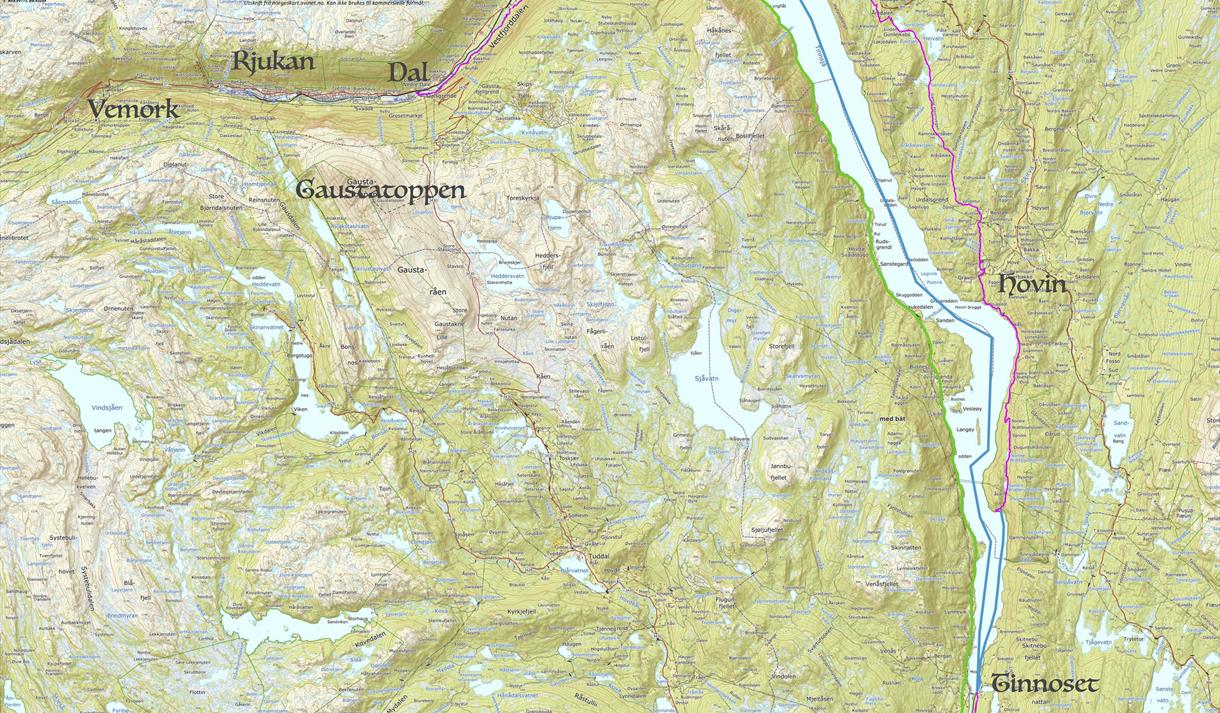 OBS: Du må på forhånd bestille båtskyss fra Tinnoset til Sandviken for Etappe Gransherad - Hovin