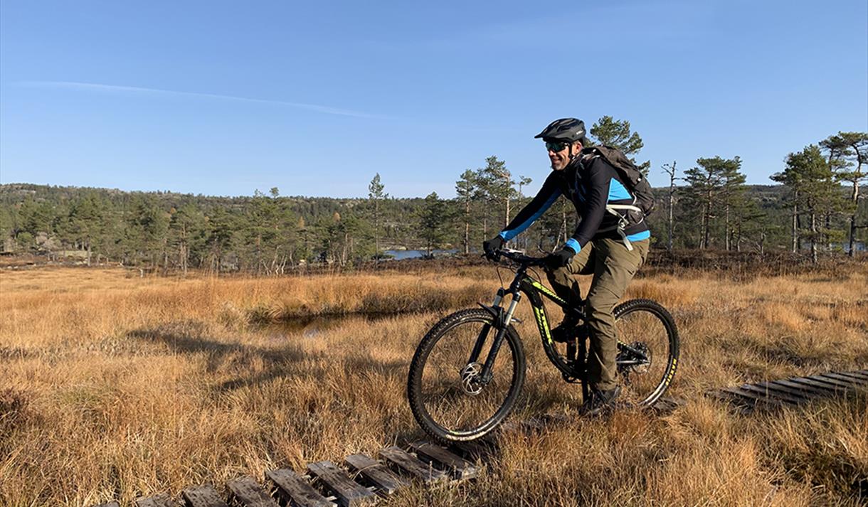 For å få mest mulig ut av de fantastiske sva- og fjellområdene på Gautefall, tilbyr Gautefall Event guidede stisyklingsturer.