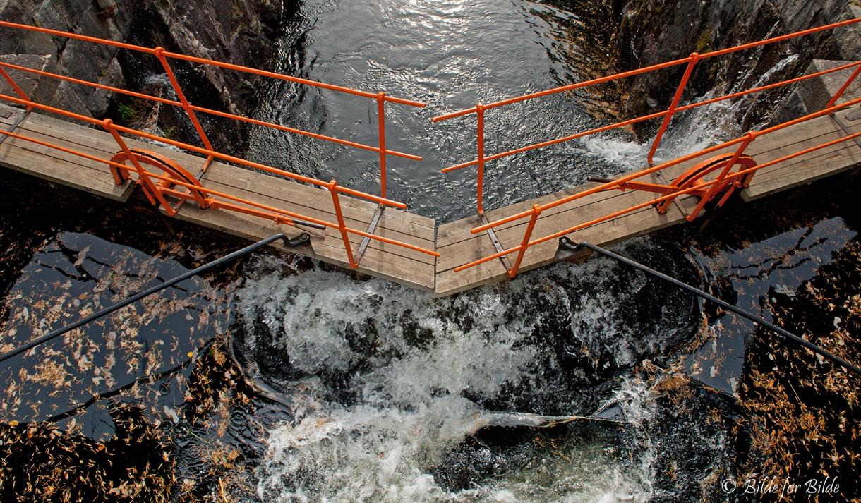 I dag er det dramatiske juvet temmet av en 32 meter høy betongdemning, men du kan fremdeles føle historiens sus ved å betrakte kongemonogrammene til Kong Oscar II og Prins Eugen, som er hugget inn i fjellveggen som et evig minne om deres besøk i 1893.