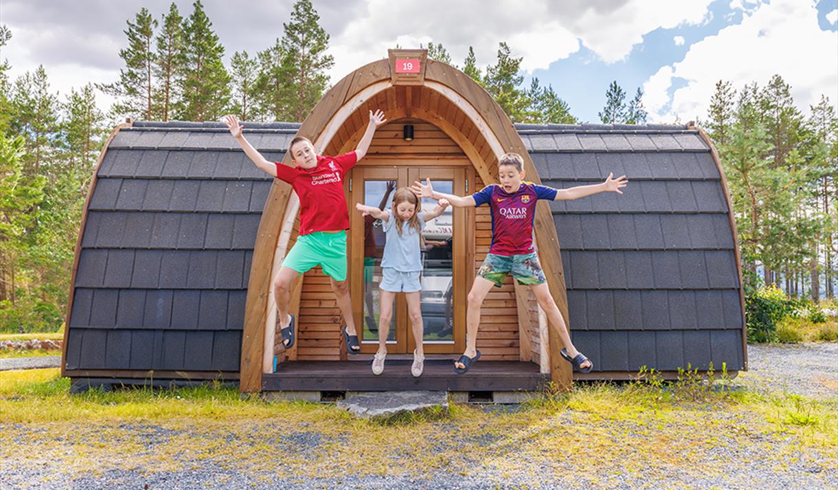 På First Camp Bø har du mulighet til å overnatte i hytter, leiligheter, stabbur eller pods.