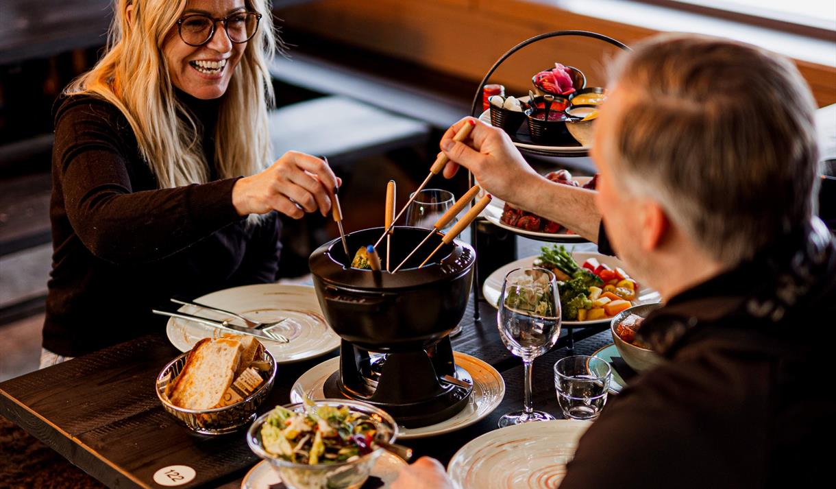 Blikk Fjellbrasserie utgjør hjertet av hotellets spiseopplevelser, og her venter en fortryllende a la carte-meny skapt av stjernekokk Jimmy Øien.
