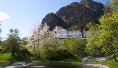 • Nutheim Gjestgiveri sett fra hagen om våren