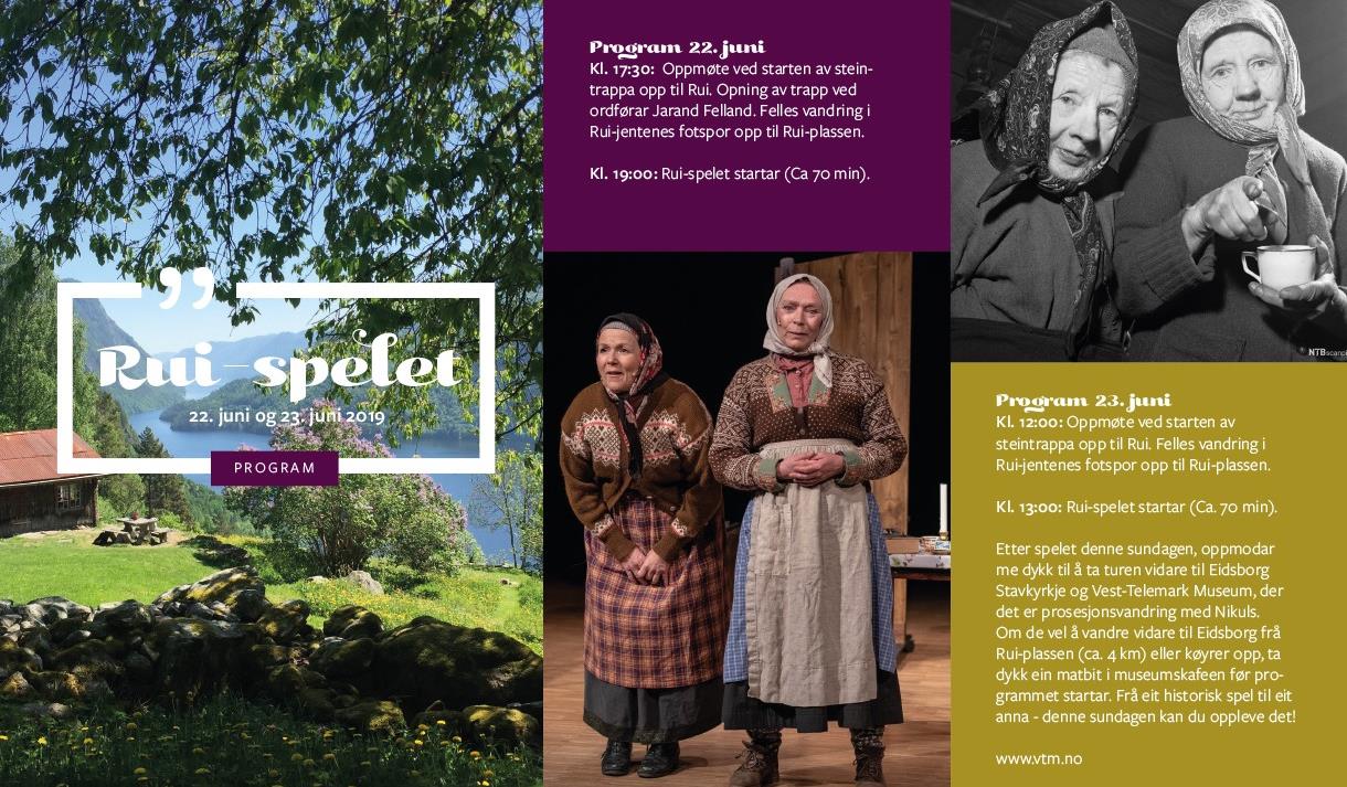 Etter spelet denne sundagen, oppmodar me dykk til å ta turen vidare til Eidsborg Stavkyrkje og Vest-Telemark Museum, der det er prosesjonsvandring med Nikuls. Om de vel å vandre vidare til Eidsborg frå Rui-plassen (ca. 4 km) eller køyrer opp, ta dykk ein matbit i museumskafeen før programmet startar. Frå eit historisk spel til eit anna - denne sundagen kan du oppleve det! Meir informasjon om prosesjonsvandringa i Eidsborg finn du her.