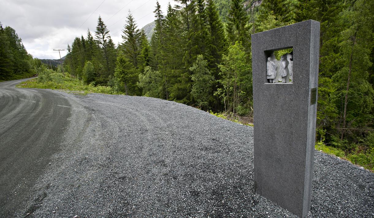 Åtte skulpturelle "kikkeskåp" i stein står ute i landskapet på stader rundt Seljord som…