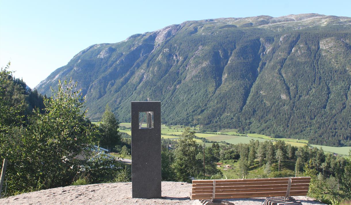 Åtte skulpturelle "kikkeskåp" i stein står ute i landskapet på stader rundt Seljord som…