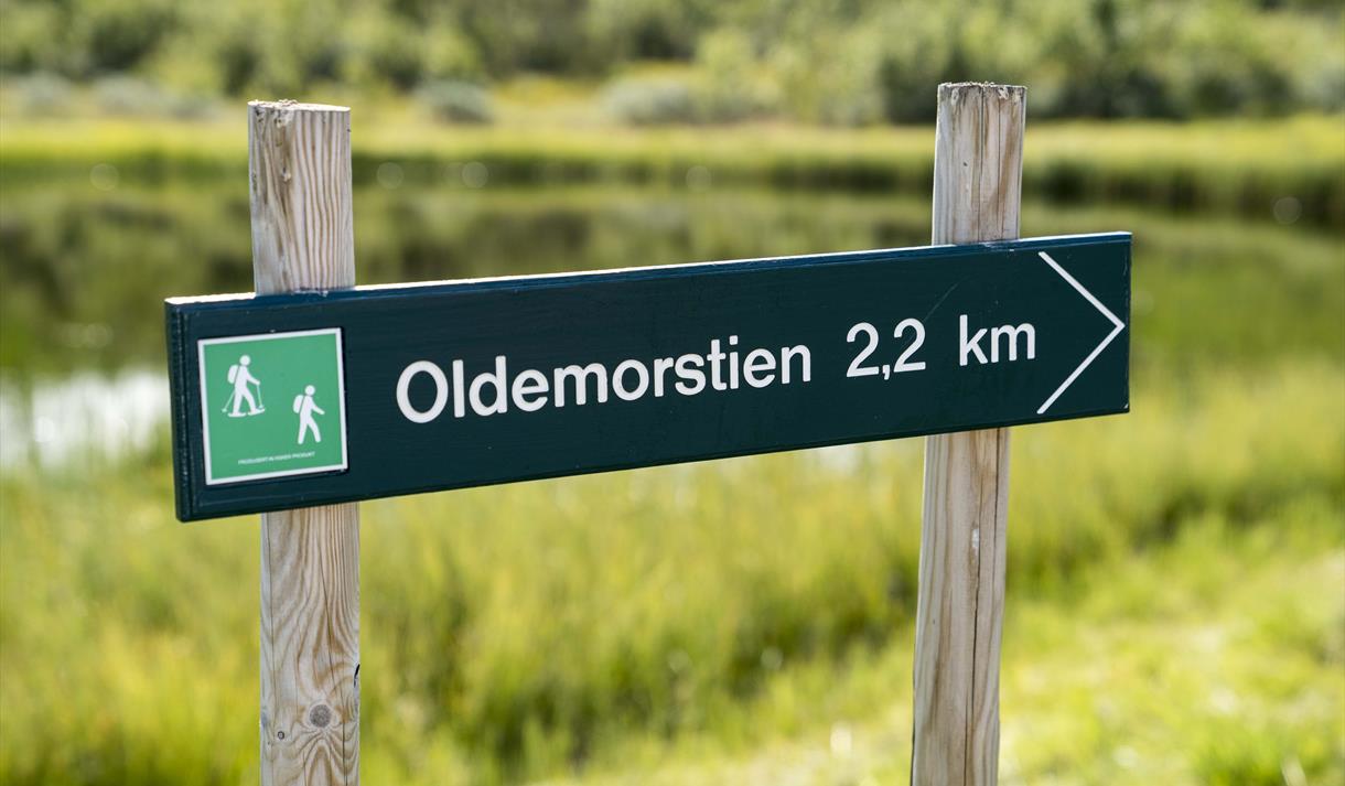 Følg stien sør for parkeringsplassen til Hardangervidda Nasjonalparksenter. Ved skiltet ”Stormyra”, ta stien til høyre mot Møsvatn Fjellpark.