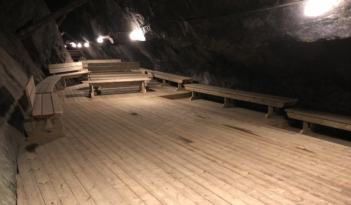 I gruvene er det fleire historiske tablå med dokker, lyd og ljos. Eit underjordisk forsamlingslokale kom på plass – her kan ein ha konsertar og andre tilstellingar for inntil 50 publikum.