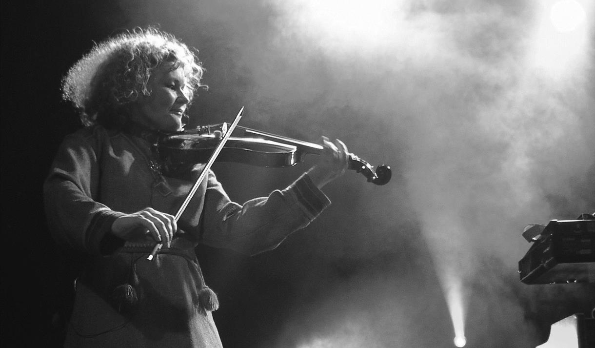 Kristin Mellem (f. 1965) er busett i Tromsø og ser seg sjølv i ljos av tre tradisjonar: den kvenske, den samiske og den norske. Ho er både komponist og felespelar og leiar folkemusikkgruppa «Vajas» (samisk for ekko). (Foto: Gunnar Mellem).