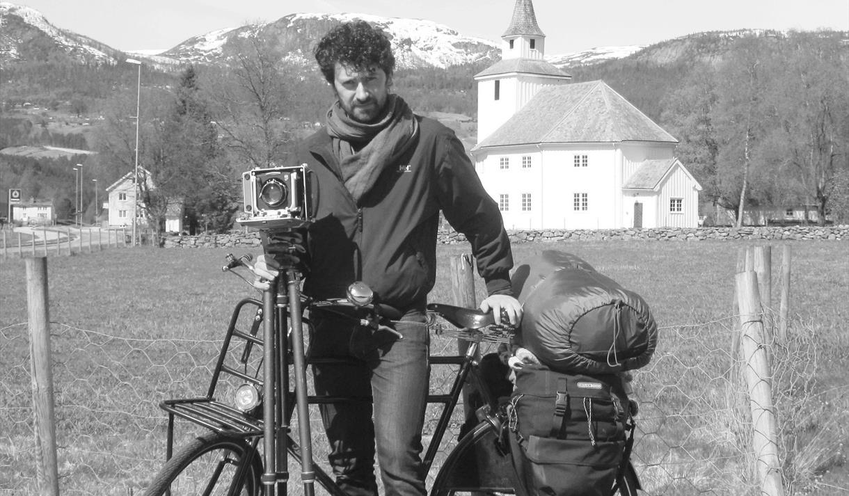 Kan hende du har sett han? Somrane 2013, 2014 og 2015 har den italiensk-danske fotografen Luca Berti reist gjennom bygdene i Vest-Telemark. Han har fotografert landskap, plassar og menneske i svart/kvitt storformat med sitt store analoge Linhof-kamera. Resultatet kunne du sjå i “haustutstillinga” i Eidsborg i 2015, som stod til våren 2016. Delar av utstillinga kunne du sjå også i 2017.