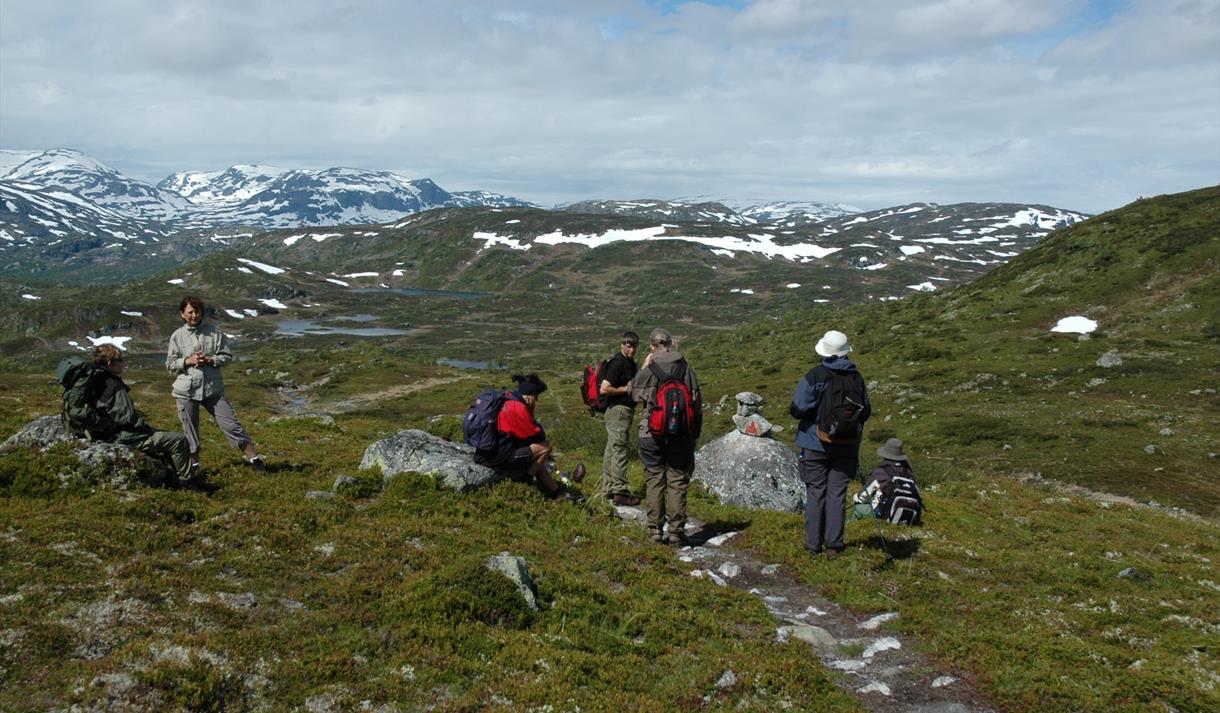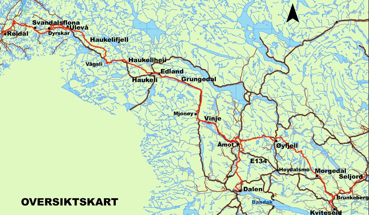 Terrenget er forskjellig frå dag til dag. Vi byrjar i låglandet, går over heiar og høgfjell til vi til sist går ned dalane til Røldal.