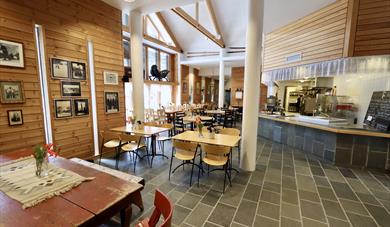Vår kafé er open kvar dag i hovudsesongen, resten av året tar me i mot grupper på bestilling. Me serverar tradisjonelle rettar og meir moderne mat, alt laga på vårt kjøkken. Ynskjer du å ha selskap, konferansar, møter eller kurs har me gode lokale til fornuftige prisar. Me leverar også mat for catering.