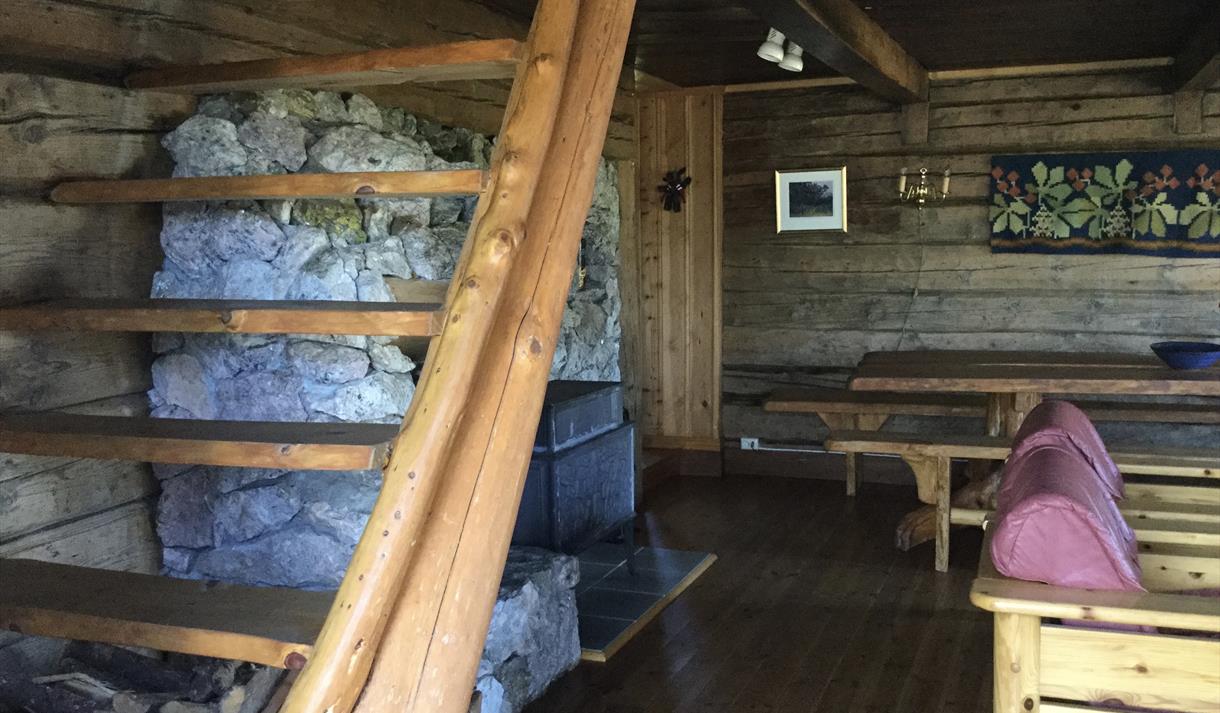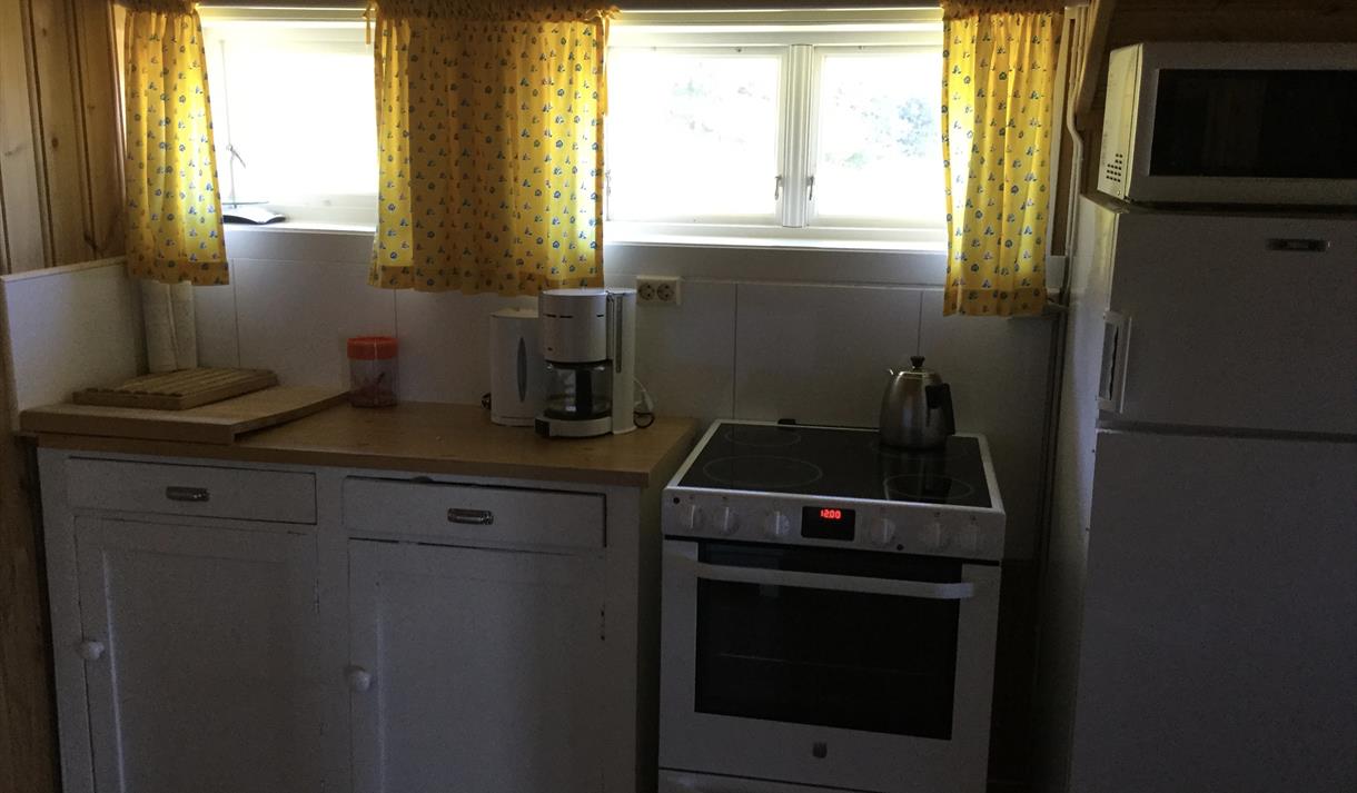 Eldhuset er eitt av husa på gardstunet, ein gammal tømmerbygning som no er peisestoge med natursteinspeis, vedovn, sofagruppe, langbord og TV m/parabol. Kjøkkenet har komfyr, kjøleskap, oppvaskmaskin, mikrobølgeovn og spisekrok. Badet har WC, dusj og vaskemaskin.