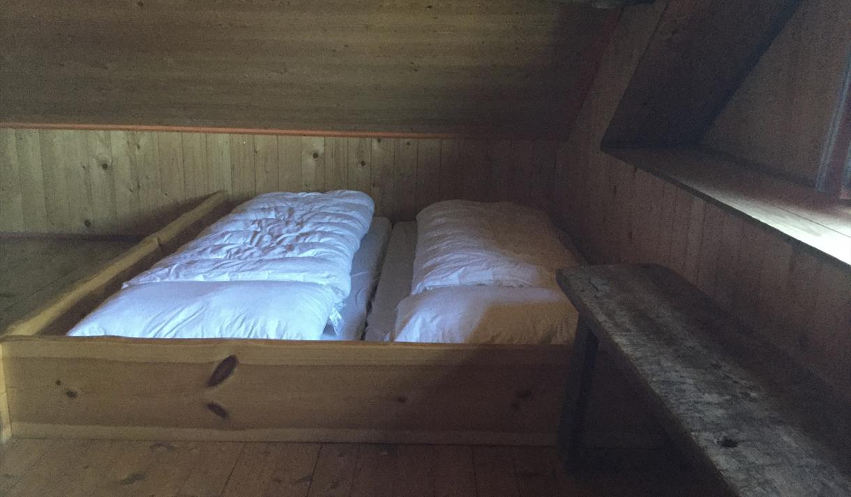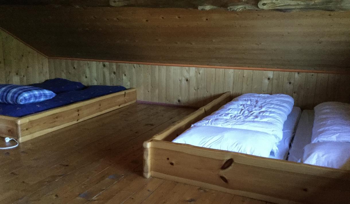 Eitt soverom med dobbeltseng i 1. etg og eitt soverom i 2. etg. med 6 sengeplassar. Godt drikkevatn frå eigen borebrønn.Terrasse med kveldssol.